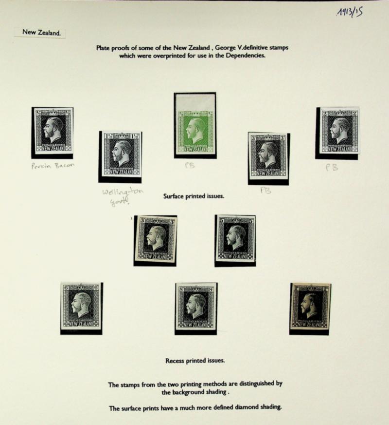 New Zealand KGV definitives 10 Imperf Plate Proofs w/ Surface & Recess printed issues (Image)