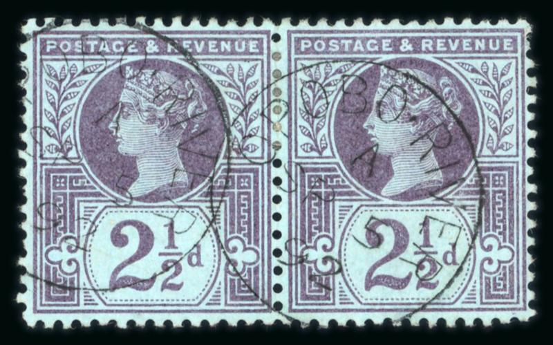 Opobo River: 1887 2 1/2d "Jubilee" pair with Opobo River code A SP 5 92 cds, very fine and scarce GB used abroad (S.G. £900+). (Image)