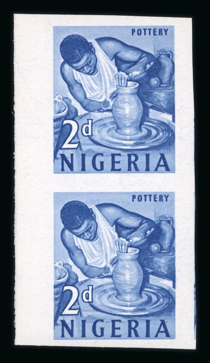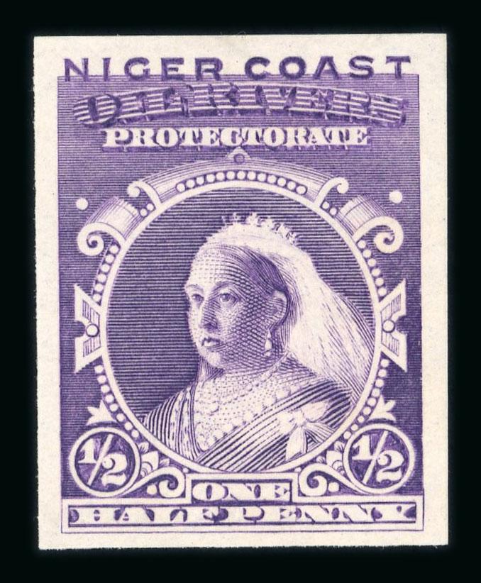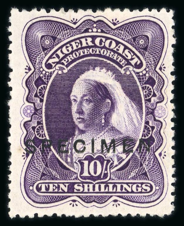 1884-1935 comprehensive mint collection on stock pages with Lagos incl. 1884 4d (toned gum) and 1887 to 10/- (10/- toned gum), then the later issues with 1904 sets to 5/- and to 10/-, Niger Coast with 1892 set, 1893 1/2d on 2 1/2d SG 33 (BPA Cert, hinge remainder), 1894 sets to 1/- and 1897 to 10/- with numerous perf types. Northern Nigeria has the 1900 set to 10/-, 1902 to 10/- (toned gum), 1905 and 1910 sets with 1912 to £1, with Southern Nigeria incl. 1901 to 10/-, 1903 to £1, 1904 to 10/-, 1907 to £1, 1912 to 5/- plus £1. Finally, the issues for Nigeria, 1914 to £1 with most shades and dies (3 x 5/-, 4 x 10/- etc), 1921 to 10/, 1936 set to £1 and 1935 Jubilee with SG 31k. A lovely collection. (S.G. £6500+). (Image)