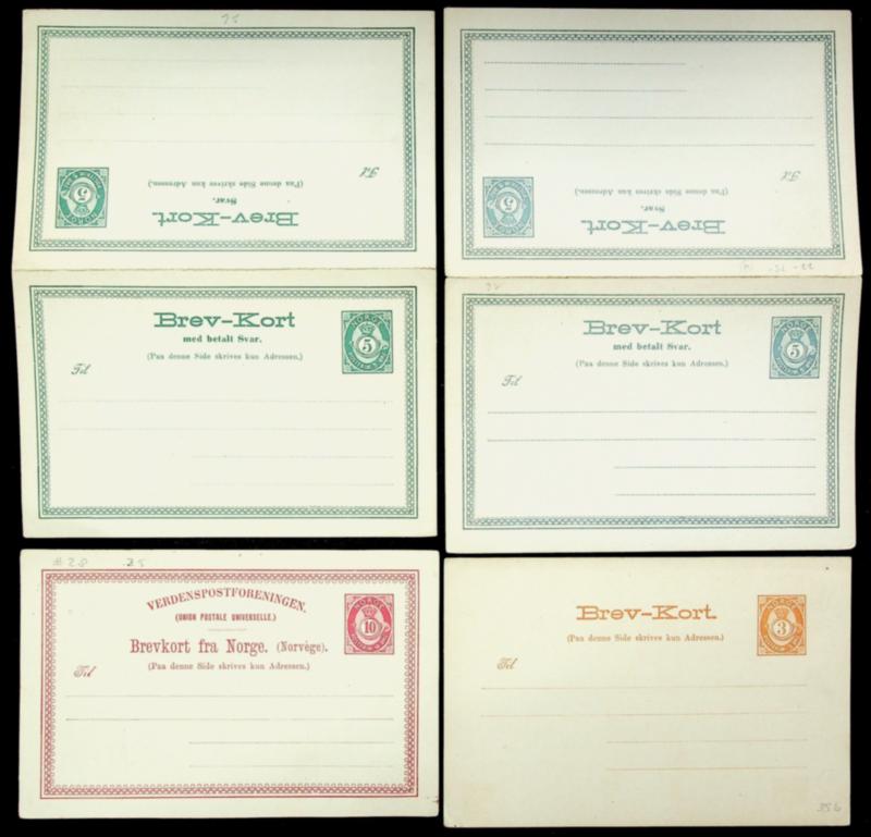 Norway set of 4 post-horn 3o, 5o & 10o unused postcards, 2 with reply (Image)