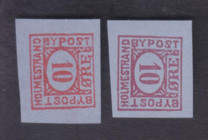 Norway Holmestrand 10 Ore Imperf 2 unused center inverted error variety stamps (Image)