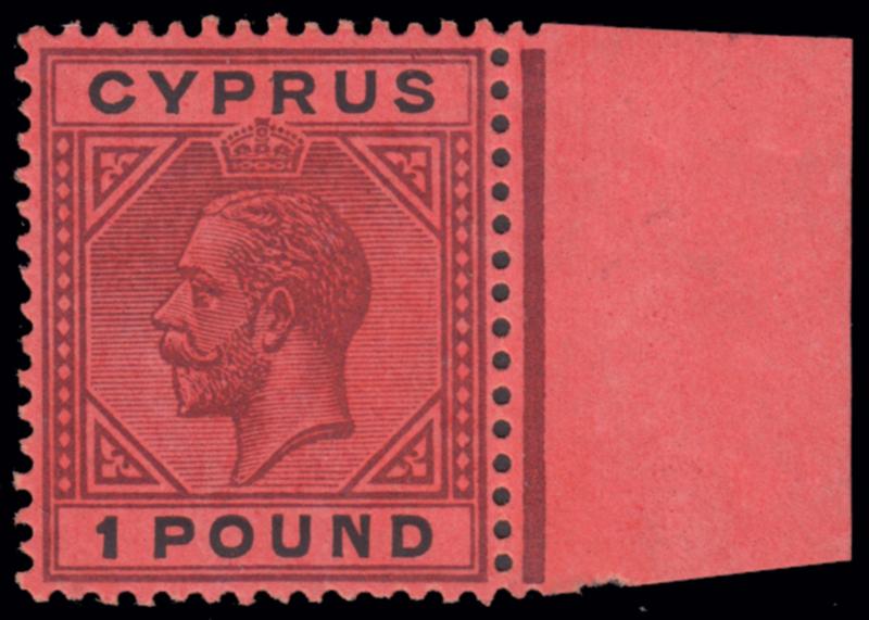 1923 KING GEORGE V. £ 1 purple & black on red, unused right side marginal, original gum, unmounted. Fine. (Image)