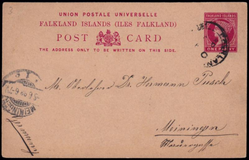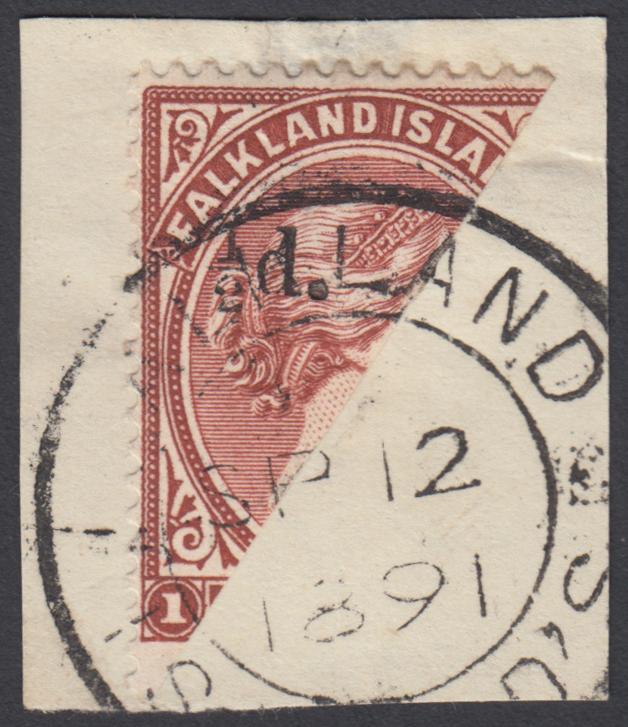 1891 Q.VICTORIA BISECTED. 1/2d. on half of 1d. red-brown (SG 14), on piece cancelled"Falkland Island'S SP 12 1891". RPSL certificate (1952). (Image)