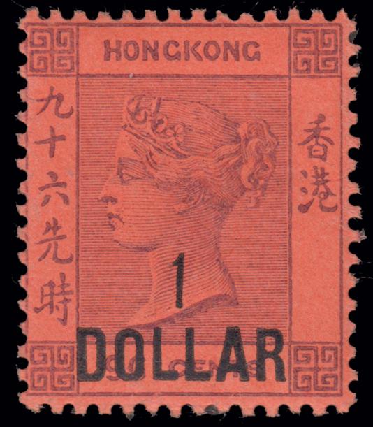 1891 Q. VICTORIA. $ 1 on 96 c. purlpe on red with ovpt in black, unused well centred with original gum (SG 47). Very fine. (Image)