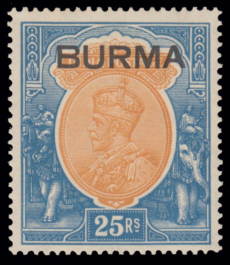 1937 BURMA. Stamp of India ovrpt in black, set of 18 to 25r. unused with large part original gum. Fine and scarce. (Image)