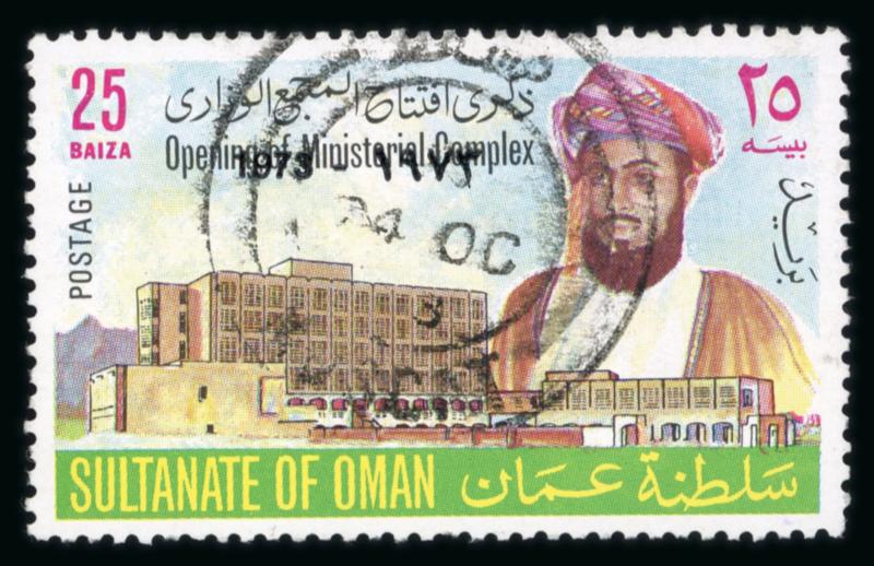 1973 Opening of Ministerial complex set, 25b emerald and 100b brown-orange, overprint variety „1873“ omitted, used singles, fine and scarce (Mi 153I,154I, €760). (Image)