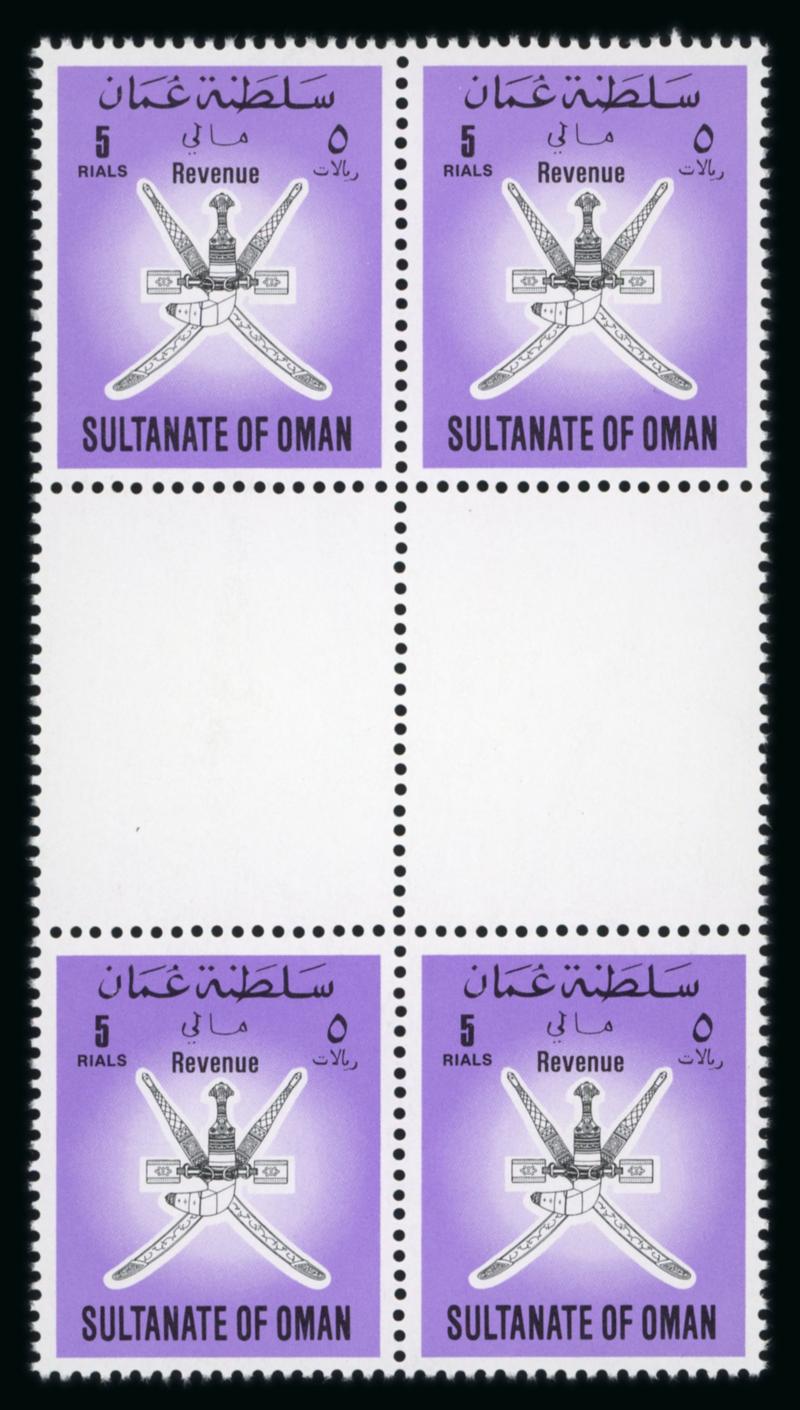 1989, Revenue Issue 5R lilac & black in rare perforate se-tenant proof gutter pair, scarce & v.fine (Image)
