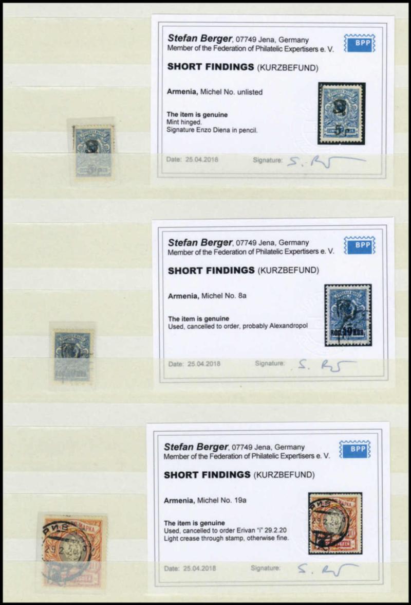 ARMENIEN - umfangreiche und außergewöhnliche Slg. mit vielen seltenen Marken und Serien. Dabei gute Anfangsausgaben, geprüft bzw. mit Befunden Berger BPP, dazu zahlr. weitere postfrische/ungebrauchte Ausgaben, geprüft Diena, Richter etc. Eine bemerkenswerte Sammlung (Image)