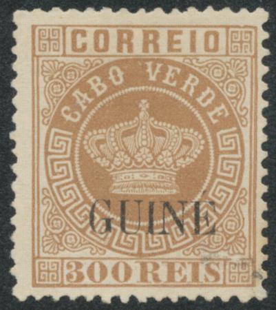 Portuguese Guinea. Scott 21, F-VF, very light cancel, 1881 300r yellow brn CV $16.50 (Image)