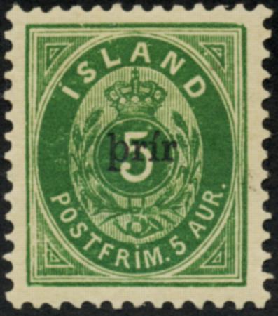 Iceland. Scott 33A, XF H, Nielsen Cert, "small prir" Black CV $1100.00 (Image)