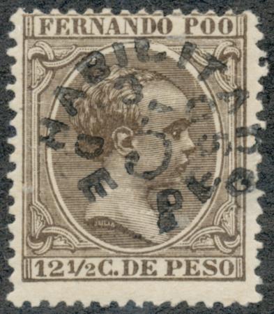 Fernando Po. Scott 25a, Fine VLH, 1896 5c on 12½c brown CV $37.50 (Image)