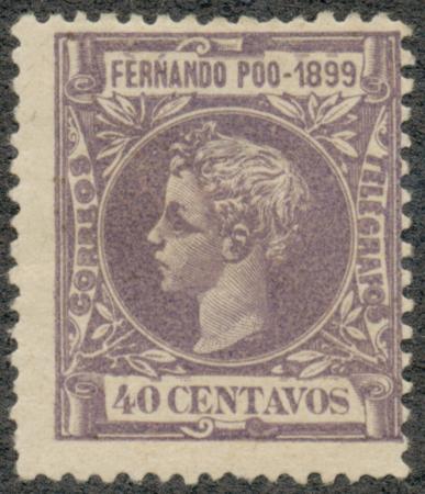 Fernando Po. Scott 59, Fine NG, 1899 40c violet CV $100.00 (Image)