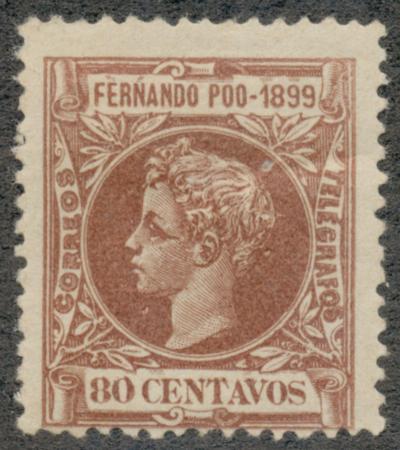 Fernando Po. Scott 61, Fine H, crs., 1899 80c red brown CV $100.00 (Image)