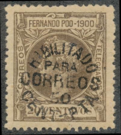 Fernando Po. Scott 88B, VF LH, 1900 50c on 20c CV $14.00 (Image)