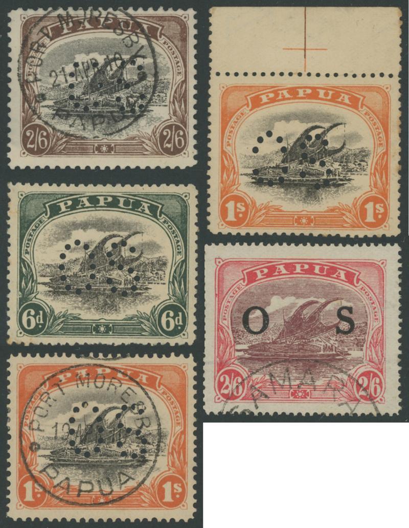 Lakatois 'OS' officials accumulation on Hagners from punctured 'OS' BNG 2/6d used also including Small 'PAPUA' Lithographs Wmk Upright Perf 11 1/- used x3, Wmk Sideways Perf 11 2d, 2½d & 1/- * plus 1/- used and Perf 12½ 1/- used x2, Large 'PAPUA' Lithographs Perf 11 ½d * x2 & 2/6d used and Perf 12½ 2½d & 6d x3 * and 2/6d Type B used x2, Monocolours set mint (ex 4d; extra 1/-) & used, Bicolours 2/6d *, also 'OS' overprints set with both 2/6d shades * plus extra 2/6d x5 (one used), imprint strips to 6d & 9d block of 6, etc, condition variable but most are fine to very fine, Cat £3300+.