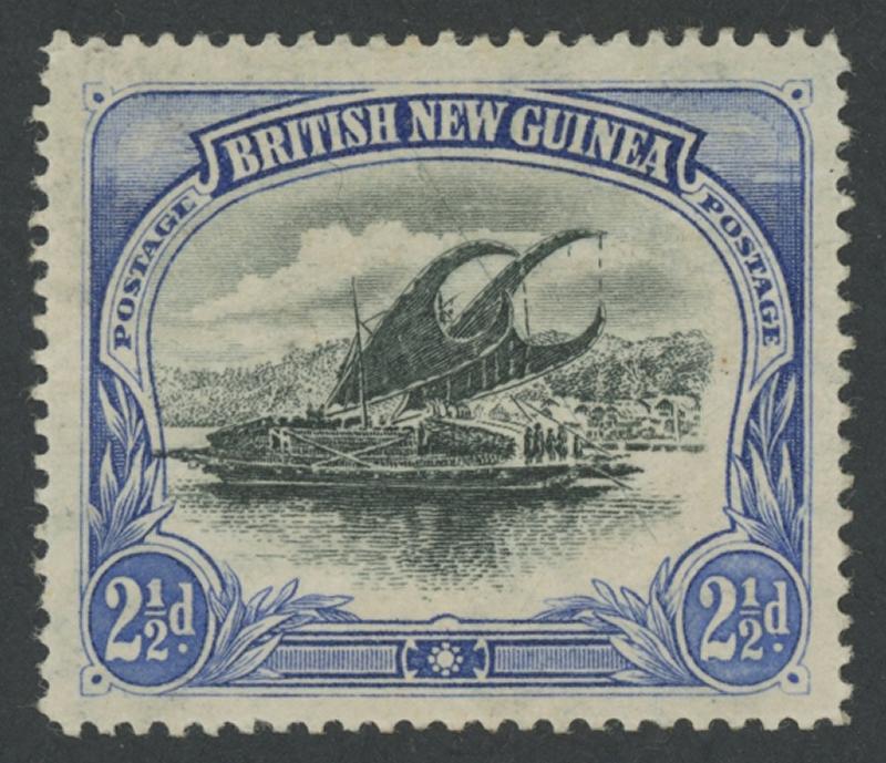 1901-05 British New Guinea Rosettes Watermark Horizontal Thin Paper Line Perf 14 2½d black & dull blue SG 4b, quite well-centred, facially very attractive but with an ironed-out diagonal crease, small hinge remainder, under-catalogued at £900. A distinctive & under-rated shade, which is often misidentified. A very fine example sold at our auction of 11.11.2022 for $3776. Submitted to Chris Ceremuga for expertising. (Image1)