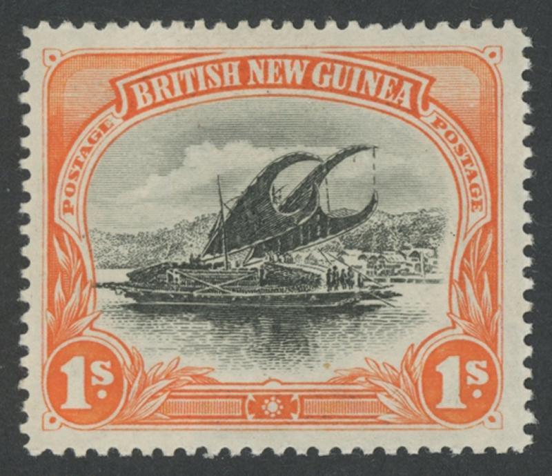 1901-05 British New Guinea Rosettes Watermark Horizontal Thick Paper Line Perf 14 1/- black & orange SG 7, well-centred, unmounted & very fresh, Cat £85+ for mounted. Superb. (Image1)