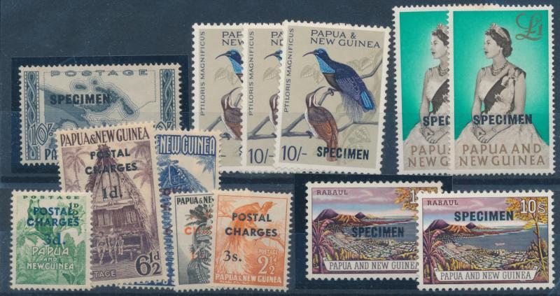 Extensive collection to mid-1970s apparently complete unmounted with lots of extras from 1952 Pictorials set in Authority Imprint blocks of 4 the 10/- Map x2 and the £1 Fisherman x3 plus a single unusually on small illustrated FDC, 10/- & £1 'SPECIMEN' overprints, 6½d 1/- and '7d' on 1/- complete sheets of 30 and Postage Dues 'POSTAL CHARGES' overprints Authority Imprint blocks of 4, 1958-60 Pictorials 1/7d Cattle corner block of 8 & imprint blocks of 4 x3, 1961-63 Pictorials 1/- & 2/- Dancers, 3/- Policeman and 8d Ship & 2/3d Plane complete sheets of 30, 1963 10/- Rabaul block of 15 and FDCs x2 different, QEII £1 complete sheet of 50 and 'SPECIMEN' overprints x2 each, 1964 Birds blocks of 4 ** & CTO plus 10/- 'SPECIMEN' overprint single, the later issues in blocks of 4 including Butterflies, Headdresses, Panorama, Ships, 5k Bird, etc, many with imprints or sheet numbers, condition generally fine to very fine.