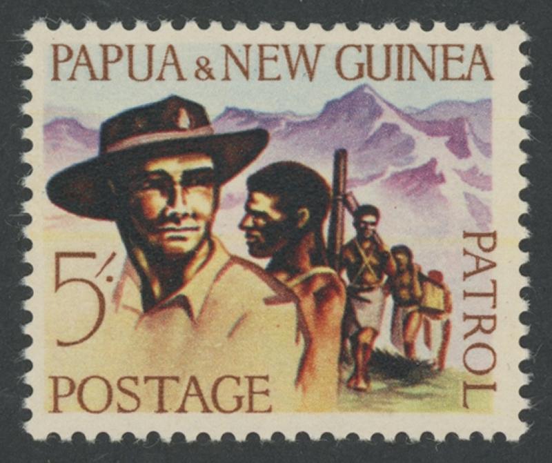 1961 Native Police 5/- Patrolman very fine unmounted. Unissued. Announced in January 1962, it is believed the issue was abandoned in September 1962 and most of the sheets were destroyed. See also next lot. (Image1)