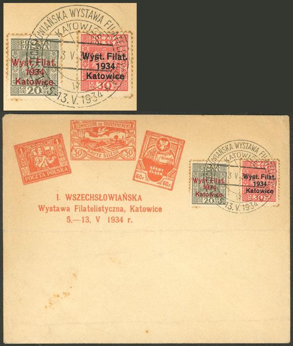 Sc.280/281, 1934 Exposition of Katowice, the set of 2 values on a special envelope with postmark of 13/MAY, last day of the expo, very nice! (Image)