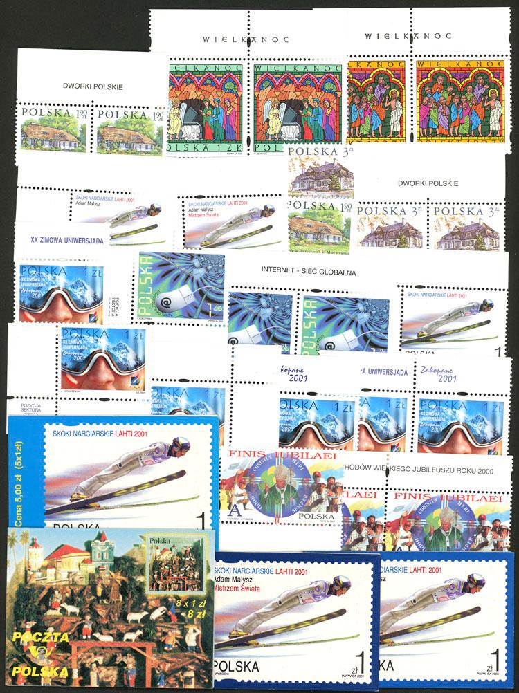 Year 2001: Very attractive lot with singles, pairs, blocks of 4, strips, etc. of the issues of 2001, all MNH and of very fine quality, including some souvenir sheets, booklets and postal stationeries, high market value, good opportunity at low start! IMPORTANT: Please view ALL the photos of the lot, because all the items have been scanned. (Image)