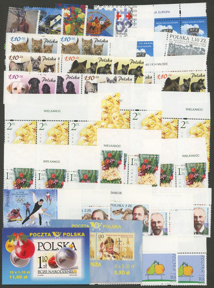 Year 2002: Very attractive lot with singles, pairs, strips, etc. of the issues of 2002, all MNH and of very fine quality, including some souvenir sheets, booklets and postal stationeries, high market value, good opportunity at low start! IMPORTANT: Please view ALL the photos of the lot, because all the items have been scanned. (Image)