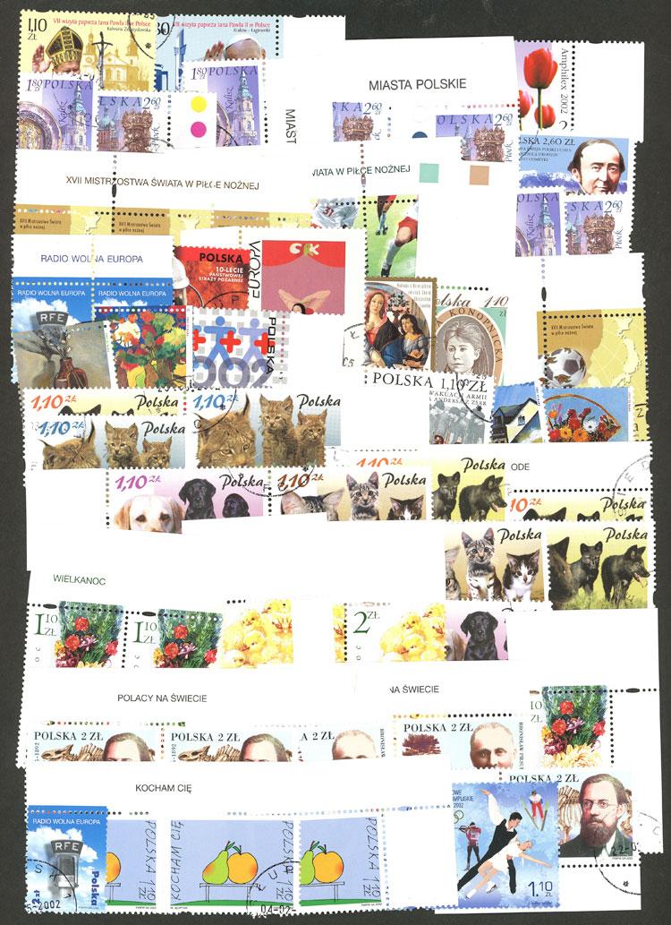 Year 2002: Very attractive lot with singles, pairs, strips, etc. of the issues of 2002, all cancelled to order, very fine quality, high market value, good opportunity at low start! IMPORTANT: Please view ALL the photos of the lot, because all the items have been scanned. (Image)