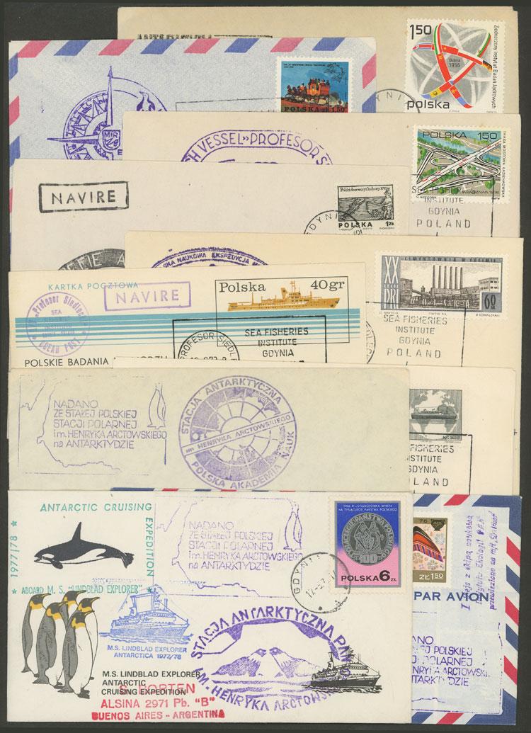 Over 90 covers and cards related to Antarctic exploration, fishing, etc., many are signed by the authorities, excellent general quality, good opportunity! IMPORTANT: Please view ALL the photos of the lot, because all the material has been scanned. (Image)