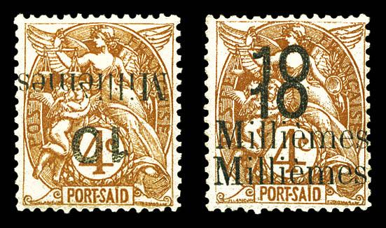 N°40a/b, 10 m sur 4c brun: surcharge renversée et ex double surcharge. TTB Qualité: ** Cote: 665 euros (Image)