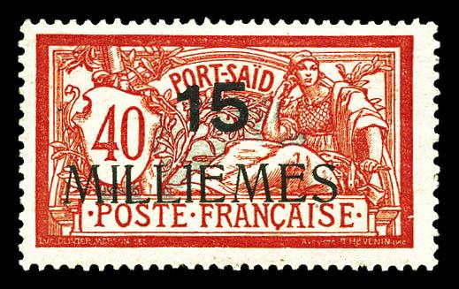 N°44c, 15m s 40c: surch avec '1' au lieu du 2ème I dans MILLIEMES. TTB (certificat) Qualité: ** Cote: 420 euros (Image)