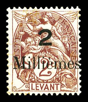 N°62C, Erreur: 2m sur 2c brun-lilas sur timbre du LEVANT (n°10). SUP. R.R. (certificat) Qualité: * Cote: 450 euros (Image)