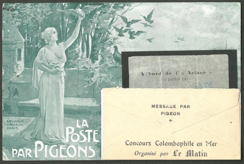 POSTE AERIENNE. AVIONS ET MEETINGS. Lettre. Concours colombophile en mer "Le Matin" 22 juil 1905. CTS complète avec son pigeongramme, obl Tourcoing. - TB (Image)