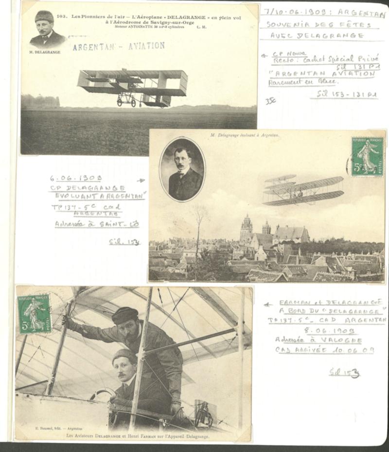 POSTE AERIENNE. AVIONS ET MEETINGS. Lettre. Argentan 7-10 Juin 1909. Sil. 153, 3 CP (dont 1 neuve) Delagrange. - TB (Image)