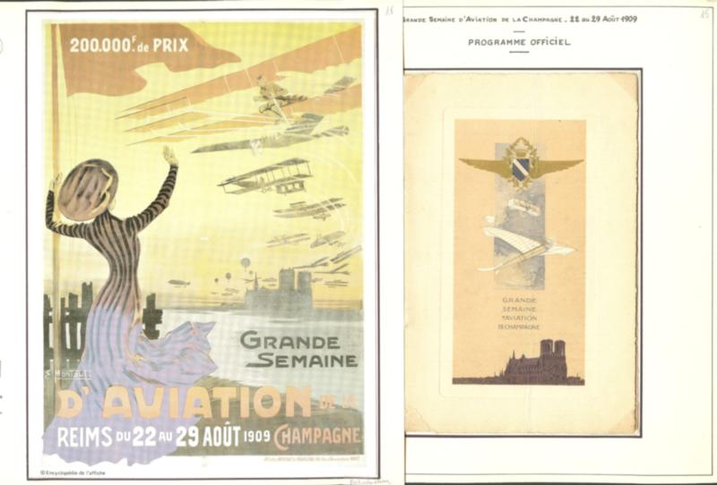 POSTE AERIENNE. AVIONS ET MEETINGS. Lettre. Grande semaine d'aviation de la Champagne 22-29 août 1909. ensemble de 11 CP majorité obl, 1 programme officiel et le règlement, cachets, OS, affts et VS divers. - TB (Image)
