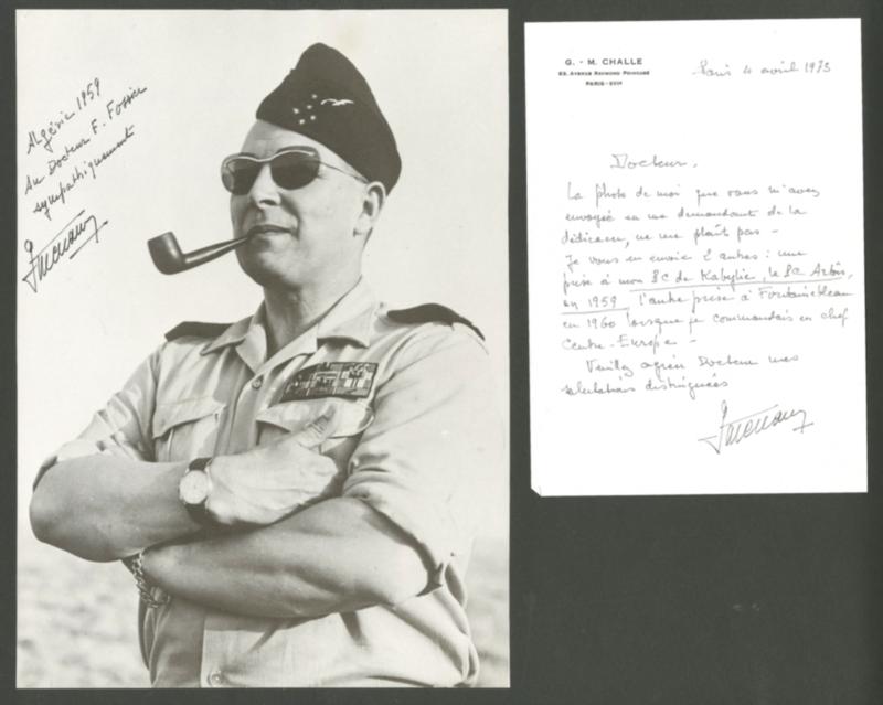 POSTE AERIENNE. AVIATEURS. Lettre. Général CHALLE (Gal d'armée aérienne). Photo 30x21cm annotée et dédicacée + courrier manuscrit correspondant. - TB. - R (Image)