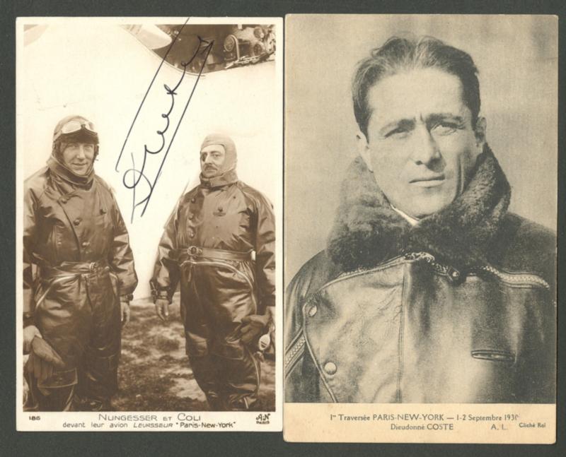 POSTE AERIENNE. AVIATEURS. Lettre. Dieudonné COSTES. Autographe sur CP photo de Nungesser et Coli, + CP neuve de D. Costes. - TB (Image)