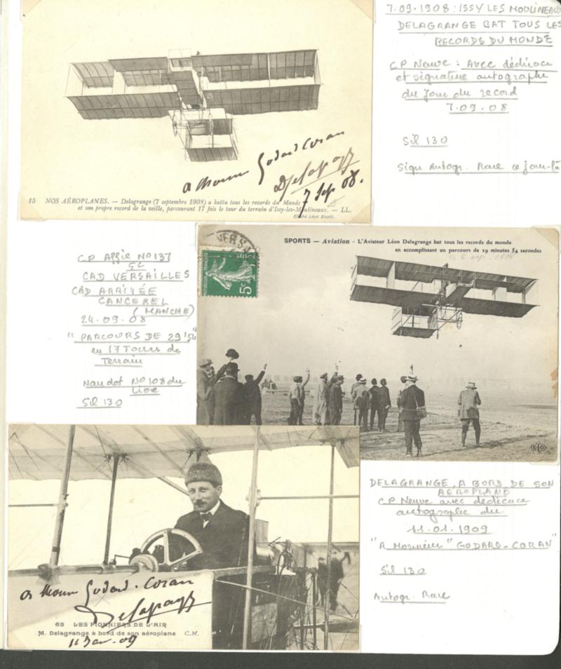 POSTE AERIENNE. AVIATEURS. Lettre. Léon DELAGRANGE. Sil. 130, 3 CP (dont 2 neuves) dont deux avec signatures. - TB (Image)