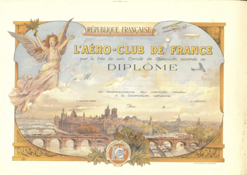 POSTE AERIENNE. AVIATEURS. Lettre. Diplômes. "Aéro-Club de France", Ca. 1920-1930, neuf, Imp. Blondel-Larougery, 50x33cm, pd dans les angles mais TB (Image)