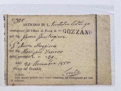 1855. GOZZANO, lineare su ricevuta di assicurata. (Image)