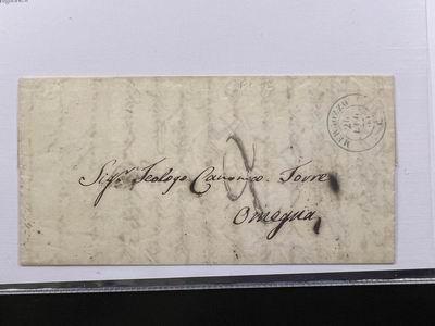 1853. lettera da Coruna per Intra con doppio cerchio "Coruna / Galicia" e "P.P. / Coruna" in ovale, entrambi rossi, transito francese e tasse. Interessante. Lettera di 3 facciate intestata al Consolato austriaco a Coruna. (Image)