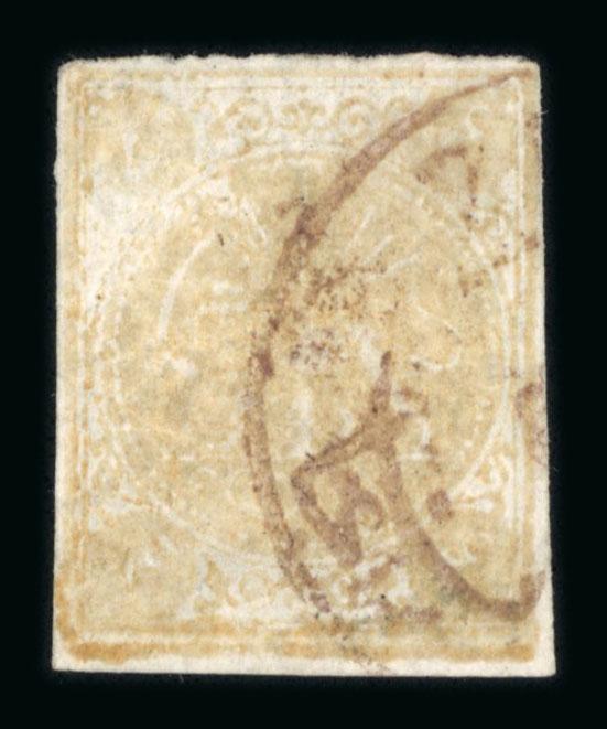 1869-70 Bagheri issue 1ch black lilac type II, partial double printing on white thin paper unused without gum, IPSC Cert (2023) (Image)
