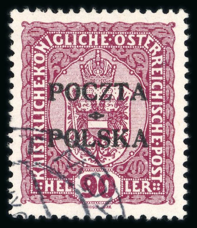 1919 90 Heller Krakow overprint, lightly used example (with original gum) and well centered, from position I-66, fine and scarce, signed Mikstein. (Image)