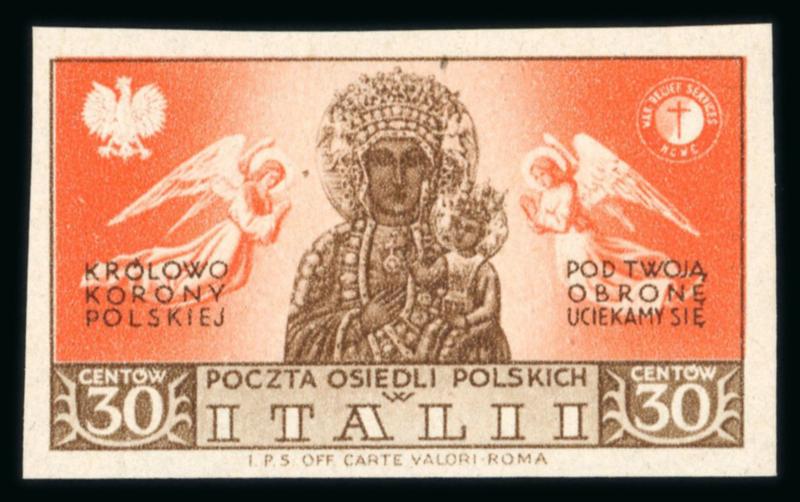 Italy/Polish Corps in Italy: Corpo Polacco with Madonna in different colours Sassone 19A+21A ** (12'000 €), 6 A/I errore di colore, certificate Raybaudi, F2A only few sheets known, pencil signed (4'500 €), 14-16 (14 perfect centered + signed) (8'000 €), Airmail 2 (Raybaudi+Diena signed) and complete part Lonon series (3'750 €). (Sassone 2023, €37'000). (Image)