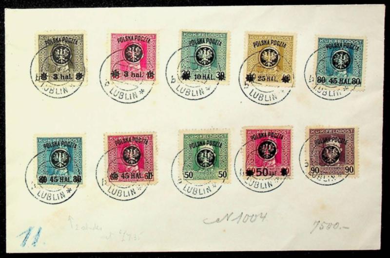 Poland Coat of Arms ovpt on Austria Kuk Feldpost 10v w/ Lublin cancel on cover (Image)
