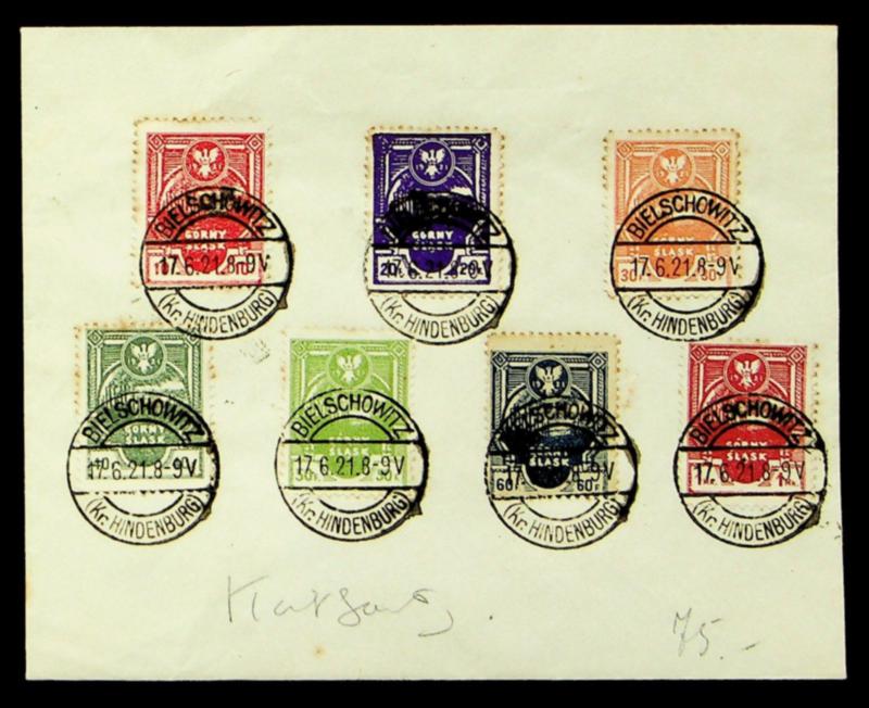 Poland 1921 7v Gorny Slask on cover w/ Bielschowitz cancel (Image)