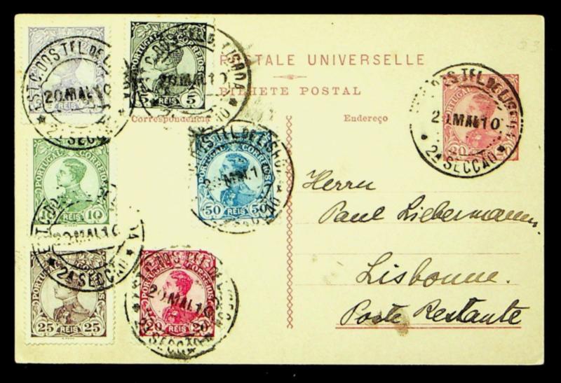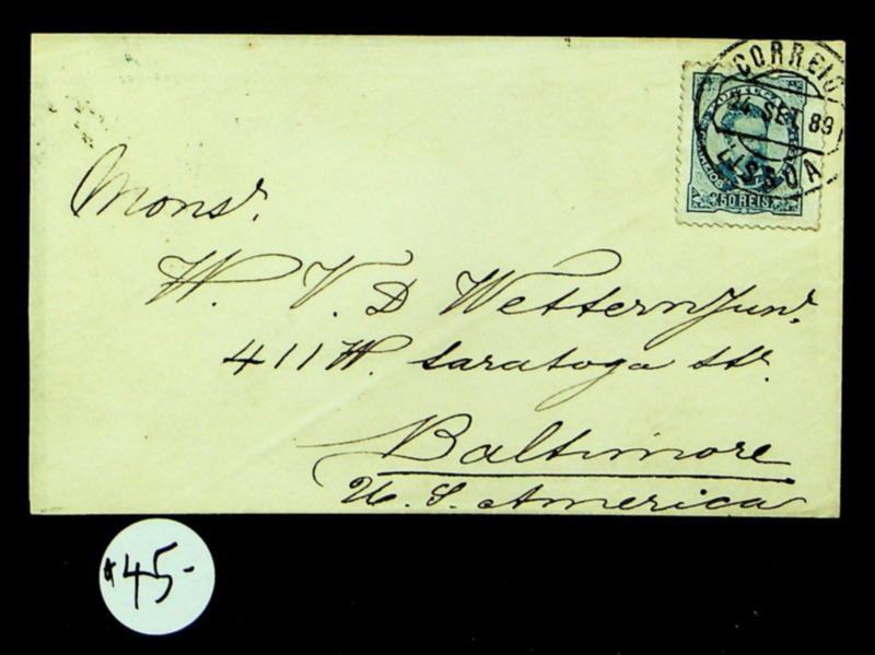 Portugal 1889 50 reis on cover from Lisbon to USA w/ Paris France cachet (Image)