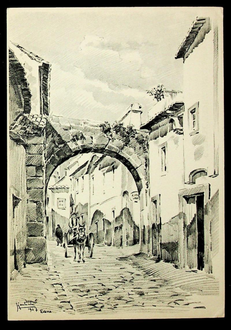 Portugal Rua Pedro Simões, Évora drawing by painter José Contente, 50e unused PPC (Image)