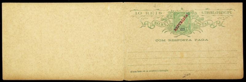 Portuguese Sao Tome and Principe King Carlos I 25 Reis w/ "REPUBLICA" ovpt in red unused postcard with reply (Image)