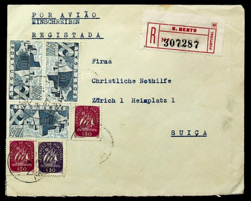 Portugal 1946 6v on Regd airmail cover from S. Bento to Zurich Switzerland (Image)