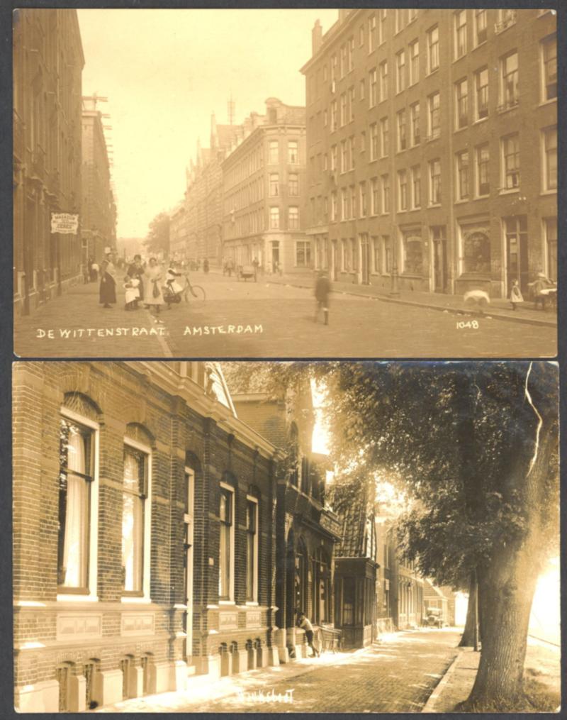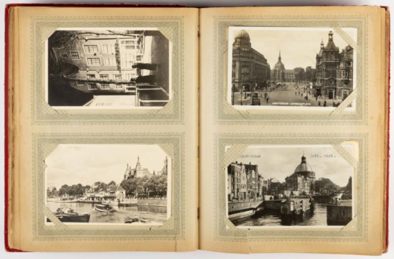 Album with appr 95 postcards of Amsterdam all pre 1940. Added appr 75 postcards of Rotterdam. (Image)